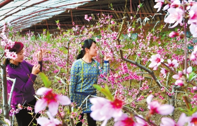 甘州區溫室大棚油桃花開放